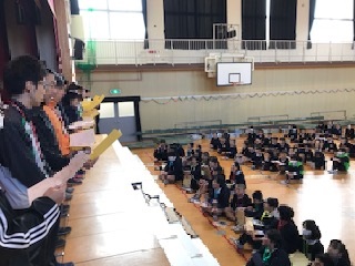 卒業を祝う会の後半には,教職員からお祝いの歌をプレゼントしました。6年生には秘密で練習してきました。6年生もしっかり聴いてくれました。わたしたちの思いが伝わっていれば嬉しいですね。
