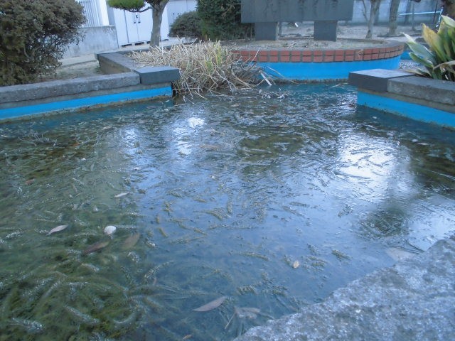 今日は、池に氷がはっていました。