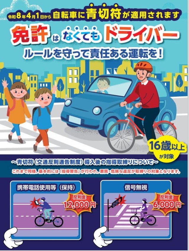 4月1日から、自転車の交通違反に反則金が科されることになります。