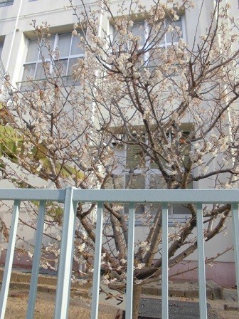 東門横の庭のさくらは、まだつぼみです。