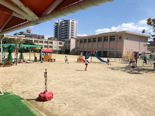 新しい年長児となったそらぐみの子どもたち。久しぶりに園庭でのびのび存分に戸外遊びを楽しみました。
