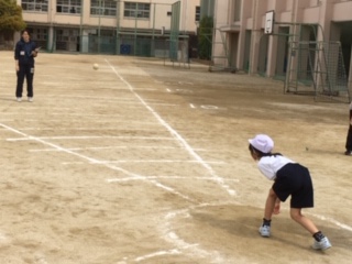 今日は1年生もソフトボール投げをしました。待っている間にコンビネーション遊び。すっかり1年生の顔でした。頼もしいですね。
