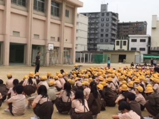 今日は家庭科室からの出火を想定して、今年度初めての避難訓練を実施しました。