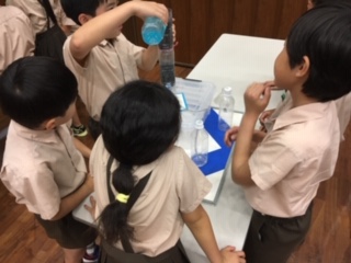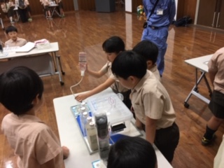 連休明けの今日、4年生は柴島浄水場の社会見学にやってきました。学習モード全開で、只今汚れた水をきれいにする実験中です。楽しんで学んでいます。