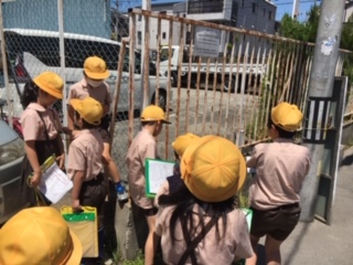 3年生は今日、自分たちが住んでいる町をもっと知ろうとグループに分かれて校区を見て歩きました。
