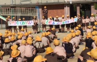 最後はさらによい学校にできるようがんばっていこうと全校児童でシュプレヒコールも行いました。