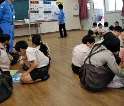 ゴミの分別のクイズをしたり、リサイクルで新しく生まれ変わった製品を見せてもらったりしました。