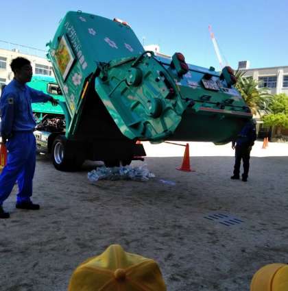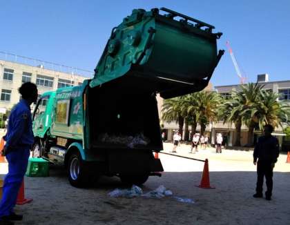 先日の焼却場見学に続いて、4年生はパッカー車の出前授業を受けることができました。