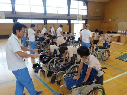 4年生は9月17日(水)、リハビリテーションセンターの方に来ていただいて、車いすの体験をしました。