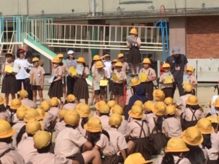 児童集会で、給食週間の表彰式がありました。