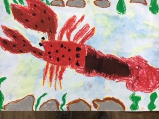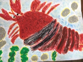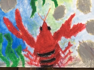 今日は2年生の図画作品です。自分達で世話をしているザリガニの絵を描きました。ザリガニに対する思いが伝わってきませんか。