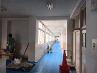 今日から大阪市営繕グループの協力を得て、西館3階廊下壁の塗装作業が始まりました。作業中は渡り廊下など通行止になることもありますが、美しく生まれ変わる廊下を楽しみにしたいと思います。
