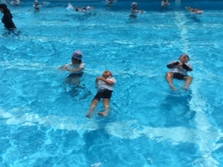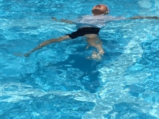 その後、浮いて待つ練習をしました。ペットボトルを抱えて、そして、何もなしで。