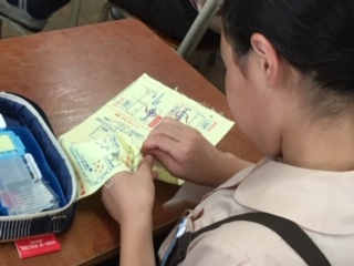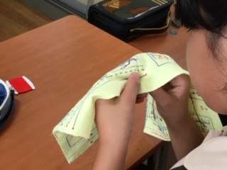 今、子供達は針と糸を持って、裁縫に挑戦中です。