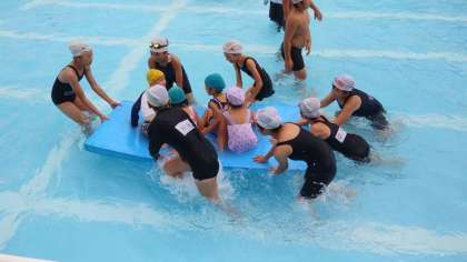 今日は併設する東中本幼稚園とのプール交流の時間を持ちました。