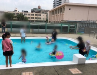 今日は、今年最後のプールになりました。プール開放に来てくれた子どもたちは、水の冷たさを感じながら、泳いだり、遊んだりして楽しんでいました。