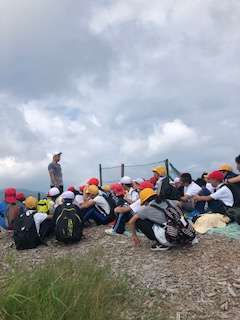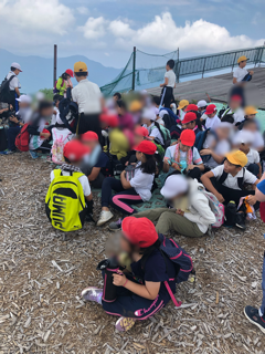 仲間で声をかけあってる姿が多く見られました。山頂では熱中症対策の塩タブレットを全員に配布しました。