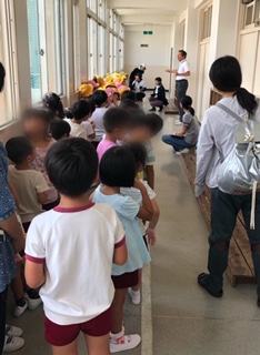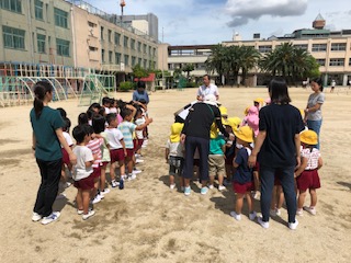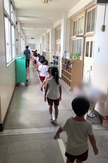 今日は、880万人の避難訓練に参加しました。園内放送とは違う放送を知り、話を聞いて、安全に避難できました。大津波警報が発令され、小学校の3階まで避難しました。ひよこランドのお友達も体験し、全員で無事に避難できました。その後、校園長先生に校内を案内してもらって、見学しました。去年のそらぐみさんが、1年生になって勉強している姿も見れました!