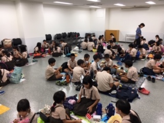科学技術館の方のご配慮で、エアコンの効いた室内でお弁当を食べさせていただいています。