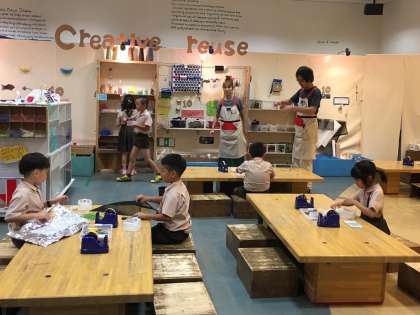 廃材を使って、好きなものを製作したり、お買い物ぴったり賞を楽しんだり。目一杯楽しんでいます。