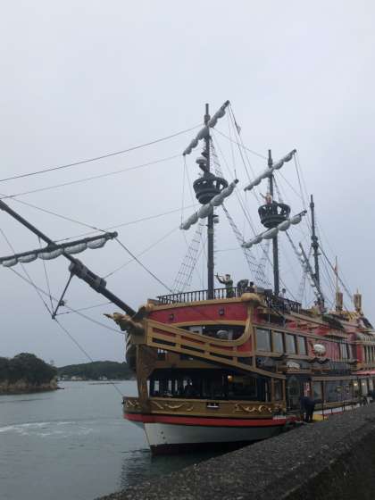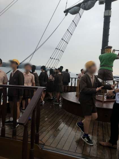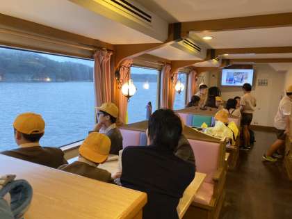 雨が小雨になってきたので、外に出て船の上からの景色も楽しむことができました。真珠や魚を見つけることができたと喜んでる児童もいました。