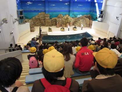水族館の中もほとんどがグループ行動。自分たちで行動計画を立てて、イルカやアシカショーなども見ました。お昼ご飯は2日間ともミルクーポンを持ち、自分たちで好きな時間帯に好きなものを食べました。