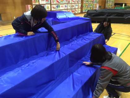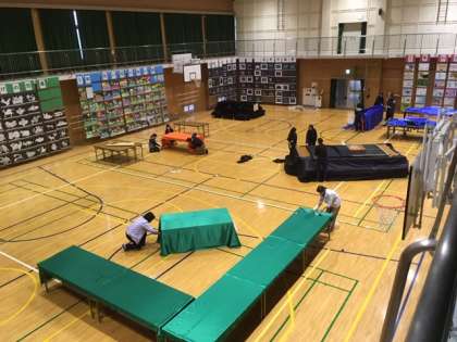 24日の作品展に向けて、今日は講堂展示の準備をしました。