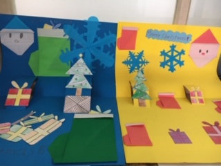 2年生の廊下側のロッカーの上に展示されていました。すごく楽しんで制作したんだろうなあと思いました。自然と顔がほころびました。