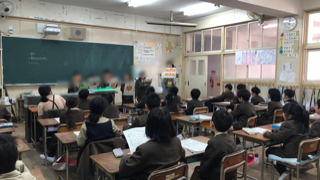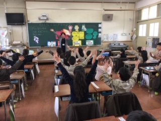 昨日、今日、そして休み明けの14日の3日間、区の栄養教諭による栄養推進事業です。昨日は3、4年生、今日はI、2年生が授業を受けました。