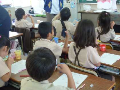 その後、子どもたちは、それぞれが持ってきた鏡を覗き込みながら、その赤く染まったところをきれいにしようと一生懸命歯磨き開始!