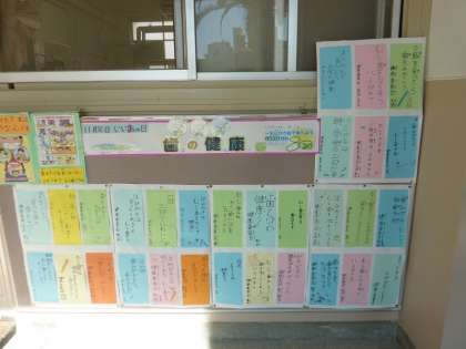 保健室の前には保健委員会の子どもたちが作った川柳も貼り出されています。