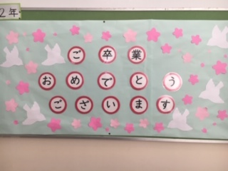卒業を祝う学年掲示板 3月6日