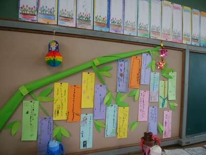 クラスの掲示も、笹にみんなの短冊が飾られていて、とても良い雰囲気です!