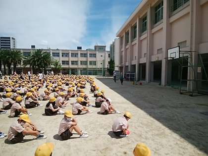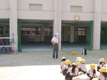 今日は今年度初めての避難訓練が行われました。1〜6年生まで全体の行事でしたが、みんな真剣に取り組み、担当の先生・校長先生の話をしっかり聞くことができていました!