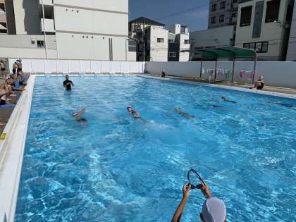 下 今日はプール納めでした!6年生、小学校生活最後の水泳学習。25mはみんな泳げるようになりました!)