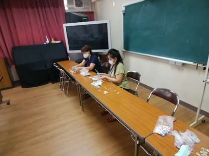 (↑上、中 本日、PTAの方が集まっていただき、ベルマークの集計作業を行っていただきました。