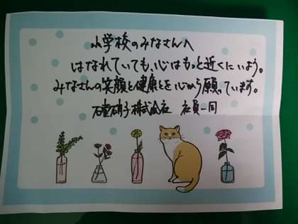 下 石堂硝子株式会社様からせっけんの液とボトルを寄付していただきました。ありがとうございます。大切に使わせていただきます。)