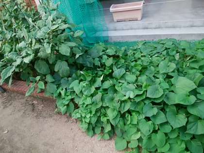 また2年生の育てでもいるサツマイモもたくさんの葉をつけ、花壇から溢れんばかりになっています!収穫するのが今から楽しみです!!)