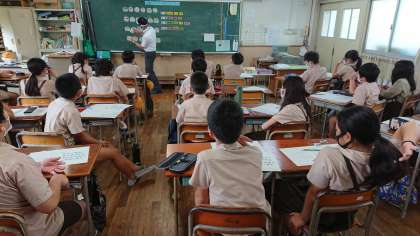 (↑2年生の英語活動の様子です!ゼイン先生との授業は初めてでしたが、先生のノリの良さと面白さで、とても楽しそうに学習していました!