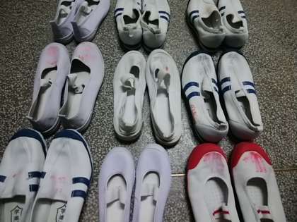 中、保護者の方が4連休に貸し出し用の上靴を洗ってくださいました!ありがとうございます。本当は、写真の三倍位の足数があります!みんな、上靴を忘れないでね!