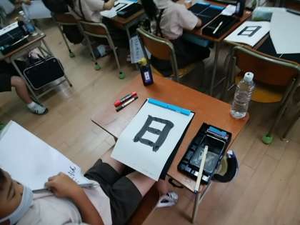 (↑上、3年生の習字の学習。習字の学習も回を重ねるごとに、段々上達してきました!