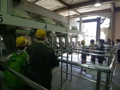 席の間隔を空けているので、乗るまで長い列が出来ています。