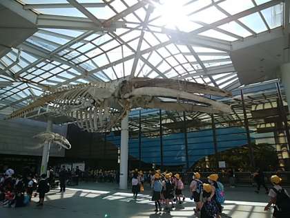 自然史博物館の前では大きなクジラの化石がお出迎えしてくれました!