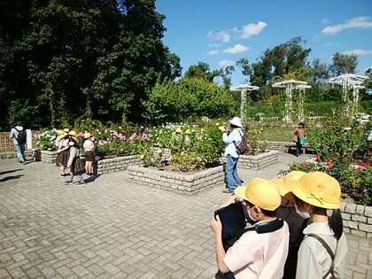 バラ園ではタブレットを使い、グループで写真を撮り合いました!