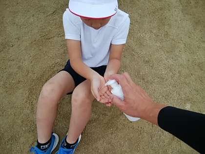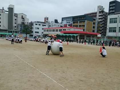 大玉運びの様子です。競技前には手洗い・消毒をしっかり行いました!