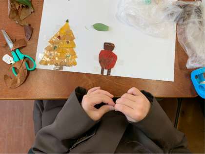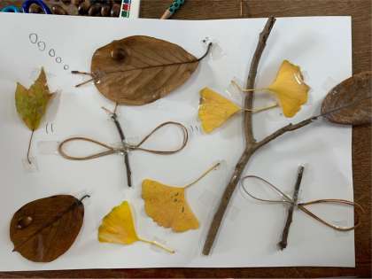 自分たちで見つけた落ち葉などを使って、画用紙に貼り付け作品に仕上げました!!