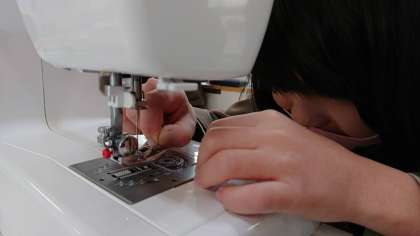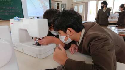 (写真は少し前のものですが、5年生の家庭科の学習の様子です。ミシンの使い方を学んでいます。)