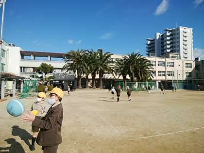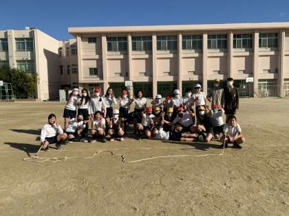 写真は休み時間の様子と、4年生の体育、6年生の体育です。6年生は2学期から目指していた長縄八の字跳び連続100回を成功させたそうです!!