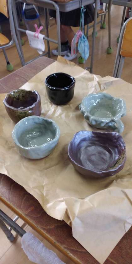 下は5年生が林間学習で作った焼き物がついに届きました!焼けて、作ったときより小さくなっているのに、みんなビックリしていました。粘土の上に塗る薬をみんな別々に選んだのですが、どの薬もとてもキレイに仕上がっていましたよ!