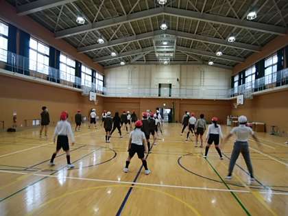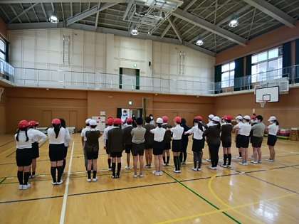 1組は体育の授業。中学校でも行う、集団行動を教えてもらいました!